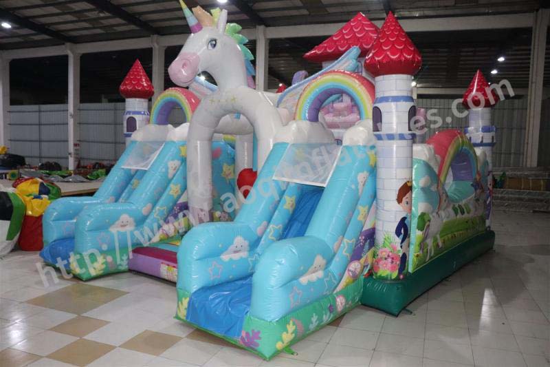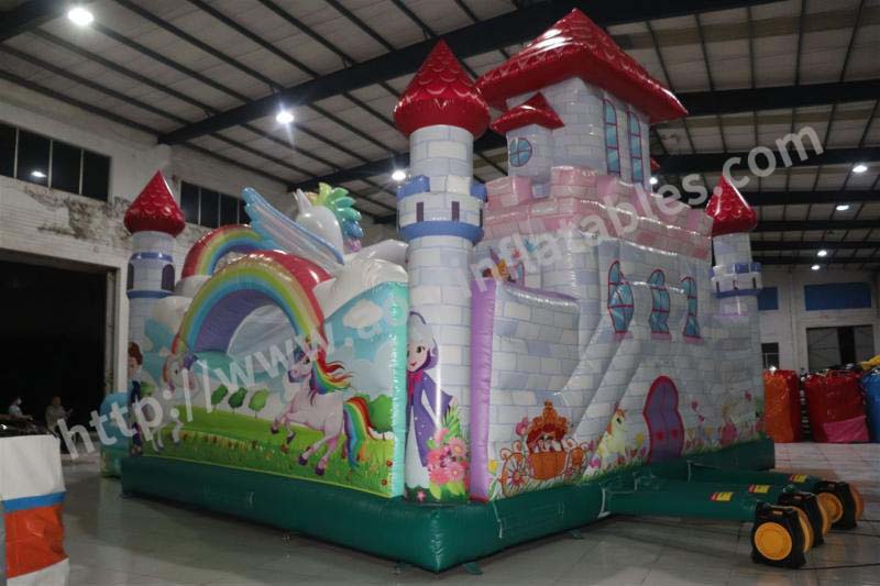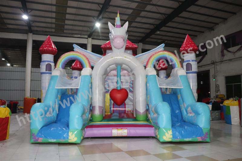 Name: Rainbow horse mushroom inflatable trampoline and slide combo