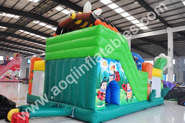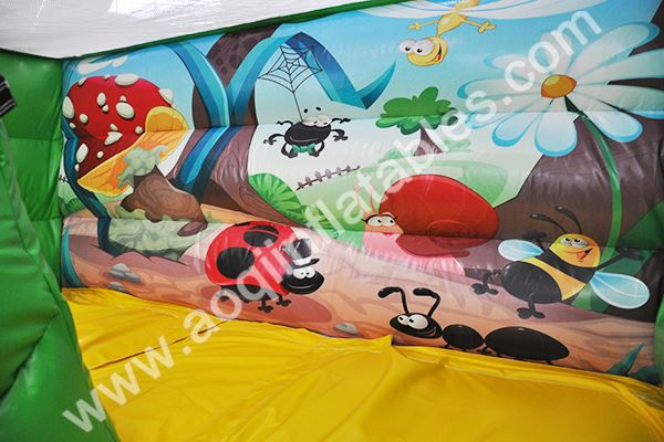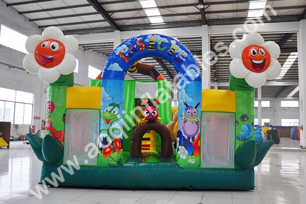 Our insect fun city is a combination of slide, bouncer and obstacles. It is a beautiful and green garden that is covered with flowers, grass, plants, trees. It seems that you come into a green belt. Trust you will have a sunny day and good feeling playing in our insect fun city.