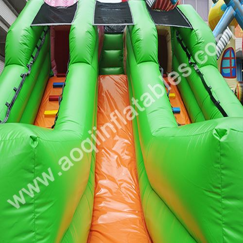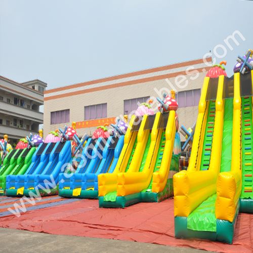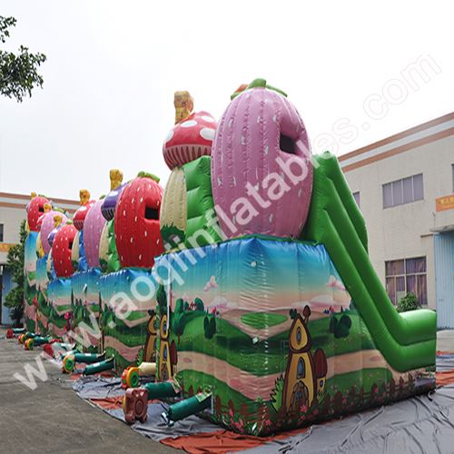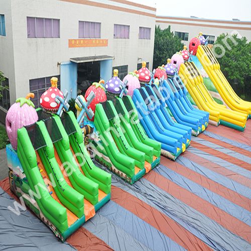 This is a cascade of slides that are linked up with one another and yet every slide can be independently used! It is perfect to put these slides together on an outdoor area for a big event! With all these unitized and endearing strawberries and mushroom cabins on top of each slide, it creates a striking view for both players and spectators, and even pedestrians cannot resist the temptation to behold!